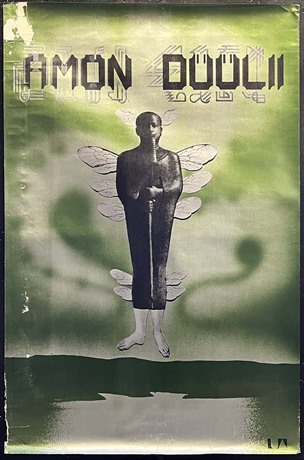 We've not seen this poster before & can't find evidence of another one elsewhere. Amon Duul II were pioneers in the West German Krautrock scene & this poster dates from the earliest (& most prominent) period with United Artists 1969-74. Poster printed with a metallic effect ink.