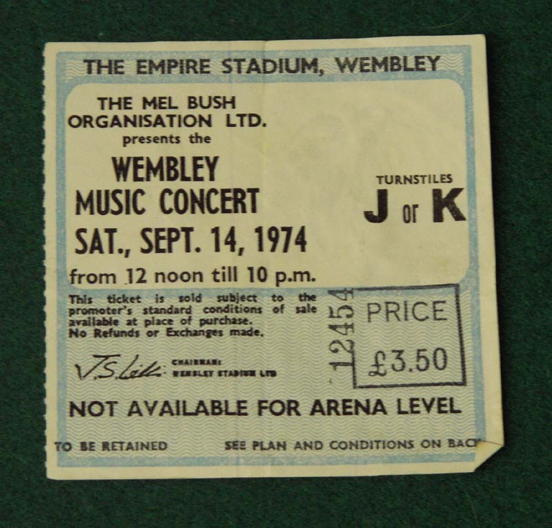 A large original double-sided Ticket for this Concert at Wembley Stadium on 14th Sept 1974 with CSN&Y supported by The Band & Joni Mitchell.