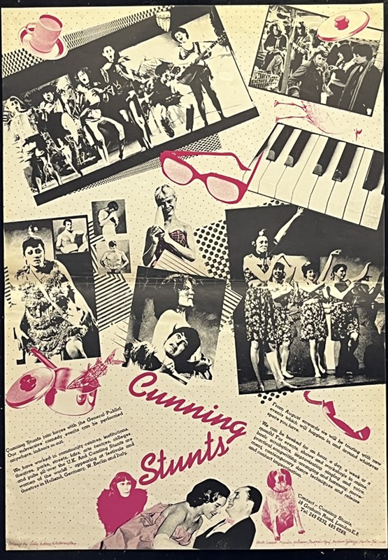The "Cunning Stunts" was an all female group of UK entertainers (music, mime, comedy, acrobatics etc) active 1977-82. Their subversive brand of humour & presentation mocked the convention of glamorous female entertainers. With strong counter-culture credentials, the "Cunning Stunts" resonated with the contemporary Punk/New Wave scene.