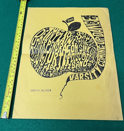 Interesting concert poster (10"x 13") for this University "Varsity Coming Up Dance" at the Dorothy Ballroom, Cambridge, 10th Oct 1967.