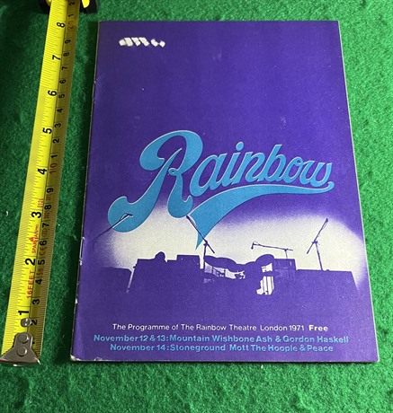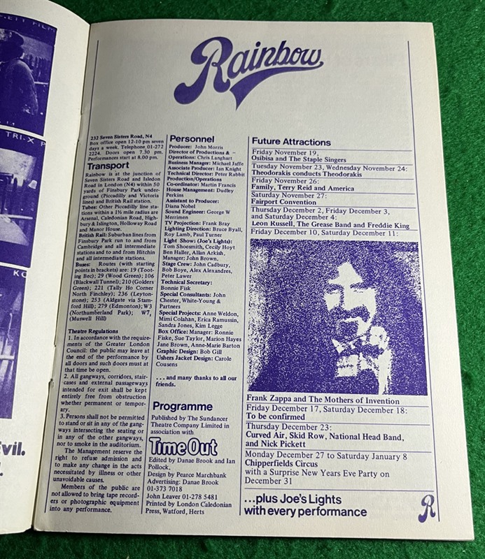 16-page Rainbow Theatre programme advertising gigs Nov-Dec 1971, including Frank Zappa & Mott the Hoople.