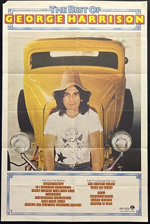 An original LP promo poster (20"x 30") for the George Harrison compilation album, "The Best of George Harrison", issued on Parlophone PAS 10011 in 1976.The poster presents a great image of the ex-Beatle looking happy & healthy! Underneath is the superlative track listing & a reminder that the talent in The Beatles was not solely the remit of Messrs Lennon & McCartney.
