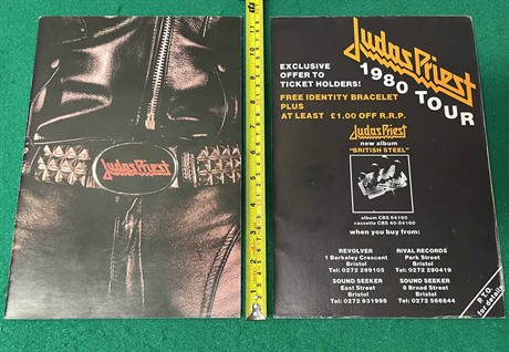 Judas Priest large double-sided 1980 Tour flyer (8"x 12") plus scarce "pop-up" centrefold Tour programme.