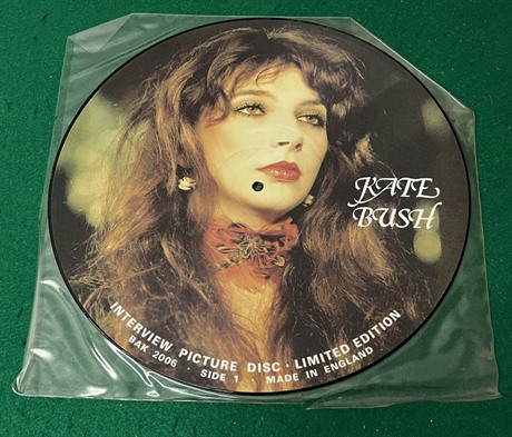 Kate Bush interest: UK 12" LP vinyl record by Kate Bush entitled "Interview Picture Disc" issued on Baktabak Records BAK 2006 in 1987. Two great images of Kate on this record.