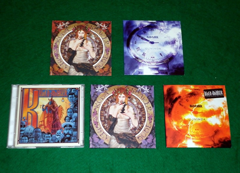 Five unplayed UK Kula Shaker CD's from 1996, all with appropriate Inserts: 1) "Hey Dude" + 3 tracks & Poster, 2) "Hey Dude" + 3 tracks 3) "Govinda" + 4 tracks & Poster, 4) "Govinda" + 3 tracks, 5) "K" album CD.