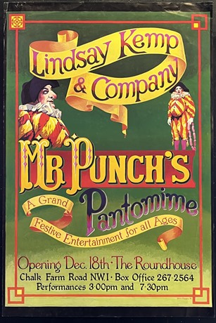 Original Lindsay Kemp "Mr Punch's Pantomime" poster (20"x 30") for a performance at the Roundhouse, 18th Dec 1976, with poster design by Silvia Jansons.