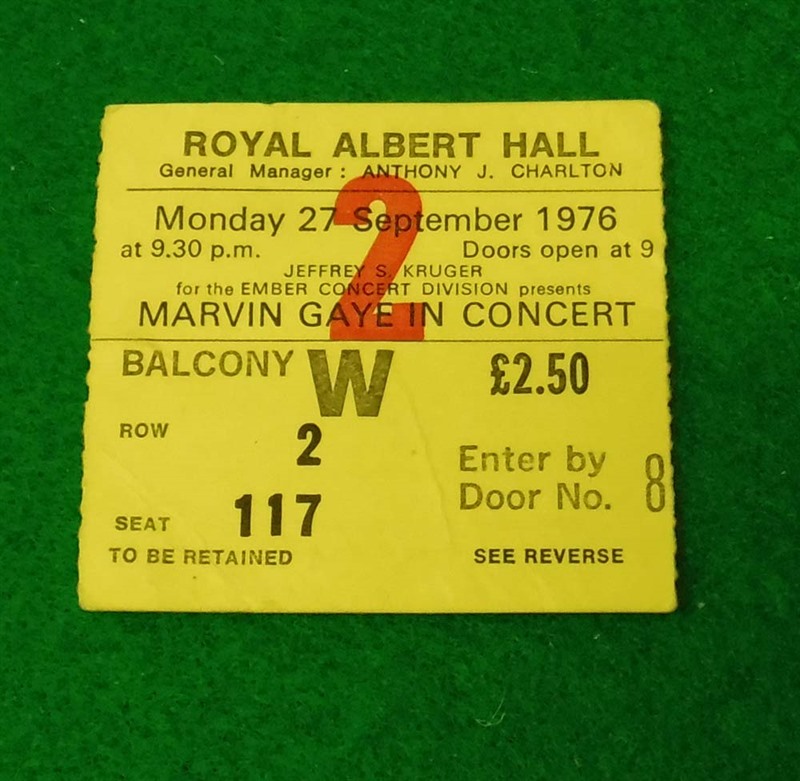 Scarce double-sided ticket for Marvin Gaye at the Royal Albert Hall, 27th Sept 1976.