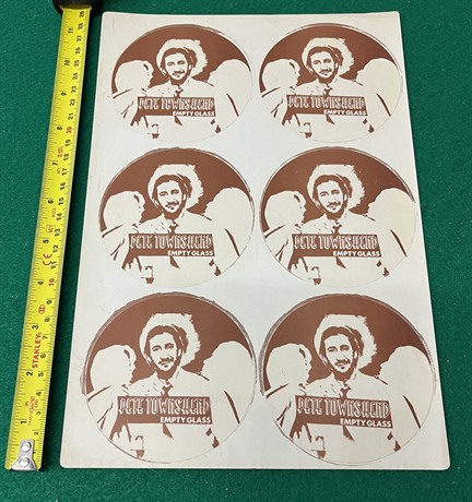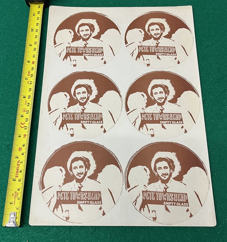 Full page of six un-used promo stickers (each 3 1/2" diameter) for Pete Townshend's solo LP " Empty Glass" (1980).