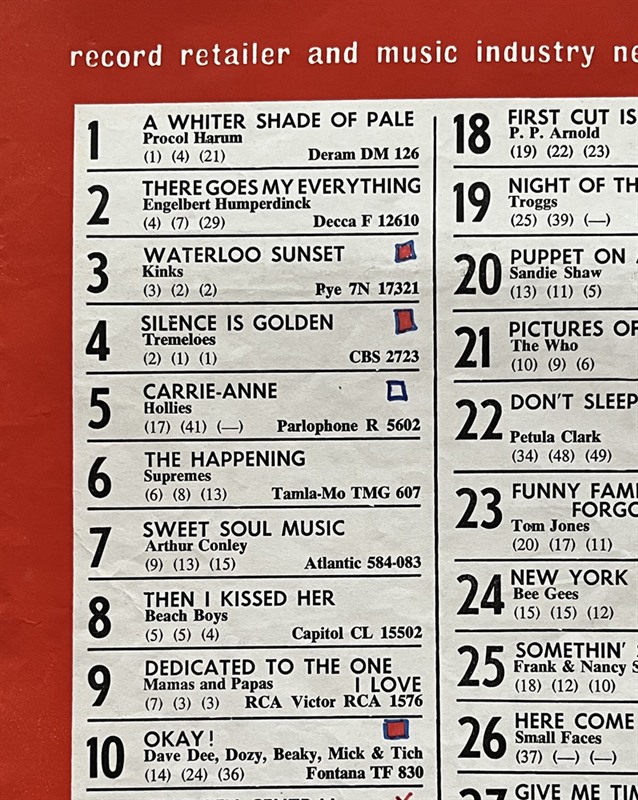 The "Top 10" this week also included releases by the likes of The Kinks, The Hollies, The Supremes, Arthur Conley, The Beach Boys etc.