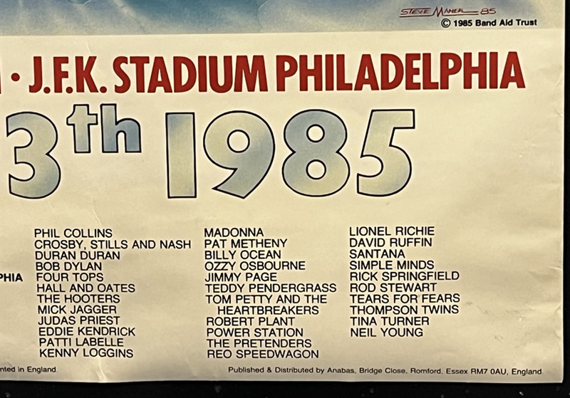 Original Live Aid 1985 poster (24"x 36") with poster design by Steve Maher.
