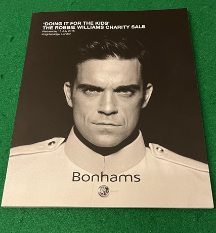 A Bonham's auction catalogue for the "Doing It For The Kids" Robbie Williams charity sale, 15th July 2015, with 48-pages of Robbie memorabilia, everything colour illustrated.