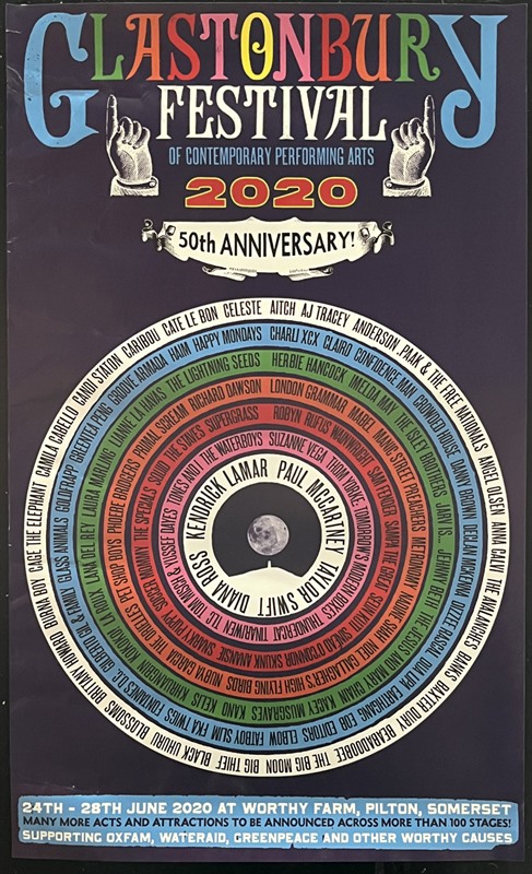 Glastonbury 2020 Festival poster (16 3/4"x 27 1/2") for the event which ultimately was cancelled due to Covid.