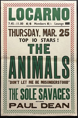 The poster references the latest Animals hit single "Don't Let Me Be Misunderstood" which went to #3 the preceding month & attendees at this gig would probably have been treated to a rendition of The Animals latest single, "Bring It On Home To Me", which peaked at #7 on 8th April '65.