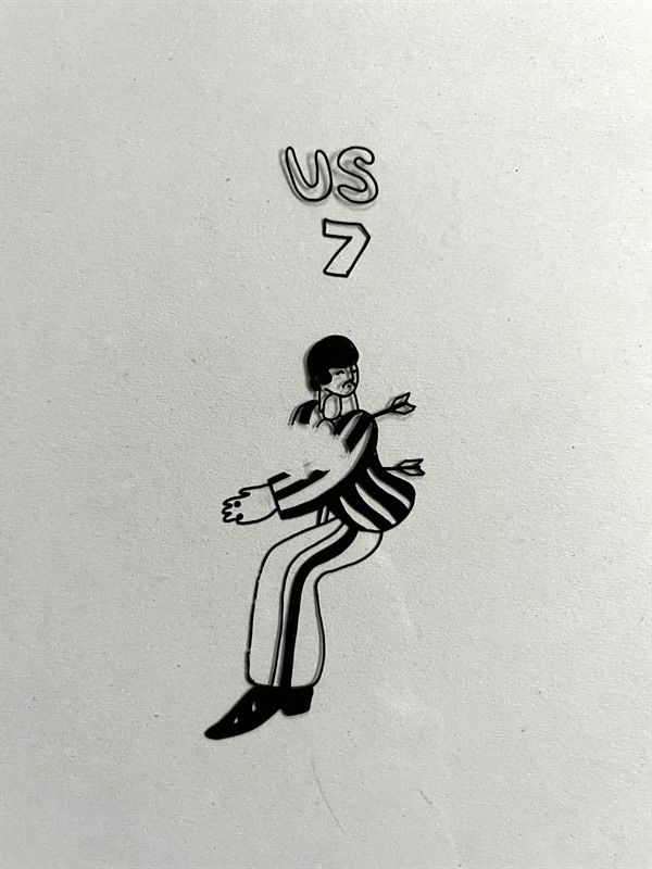 Original animated hand-drawn artwork from The Beatles film "Yellow Submarine" (1968) showing an image of Ringo Starr from the Cavalry charge scene, Ringo with two arrows in his back. This artwork (approx 4 1/4" high) is on an acetate sheet (12 1/2"x 32" approx). This item belonged to the commercial artist Corona Maher who worked at