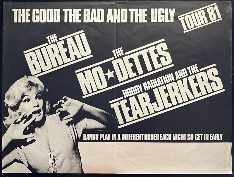 Fabulous 1981 New Wave Tour poster (30"x 40") featuring The Bureau, The Mo-dettes & Roddy Radiation & The Tearjerkers.