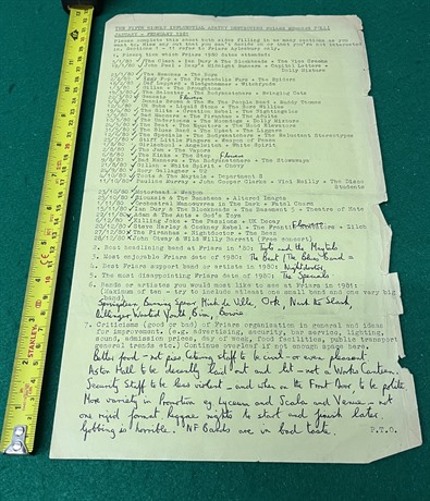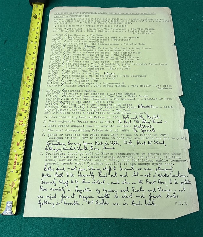 Invited to give feedback, this particular member was an avid attendee witnessing gigs by The Clash, Ramones, Jam, Siouxsie, Motorhead, Ian Dury etc during the year. He/she didn't rate the food, wanted the security staff to be "less violent" & thought "gobbing is horrible" - sums up Aylesbury 1980 style!