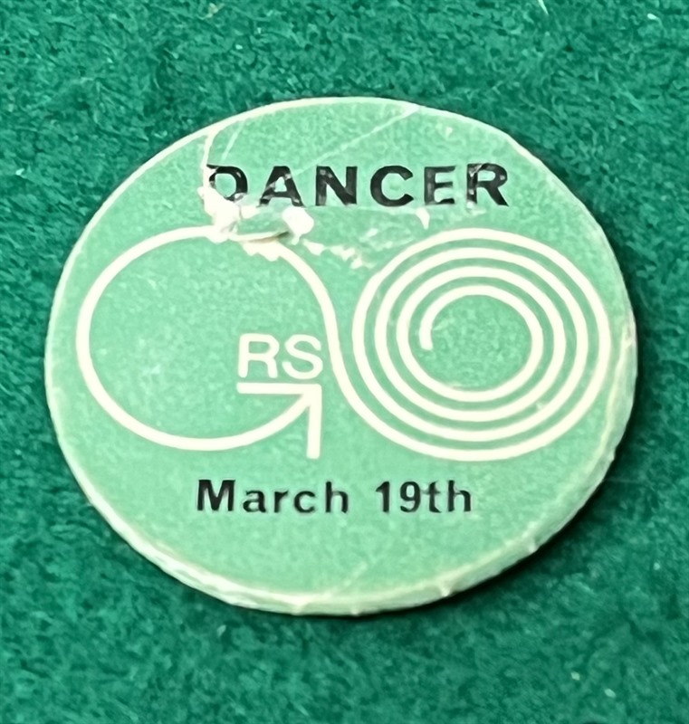 Rare original card badge (1 1/2" diameter) for a "DANCER" on the TV show "Ready Steady Go" ("RSG").