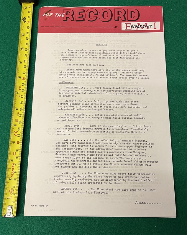 Original 4-page EMI biography for the Brumbeat band The Move, dating from April 1968.