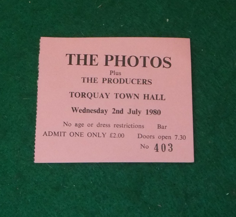 An original card ticket for The Photos, supported by The Producers, at Torquay Town Hall, 2nd July 1980.