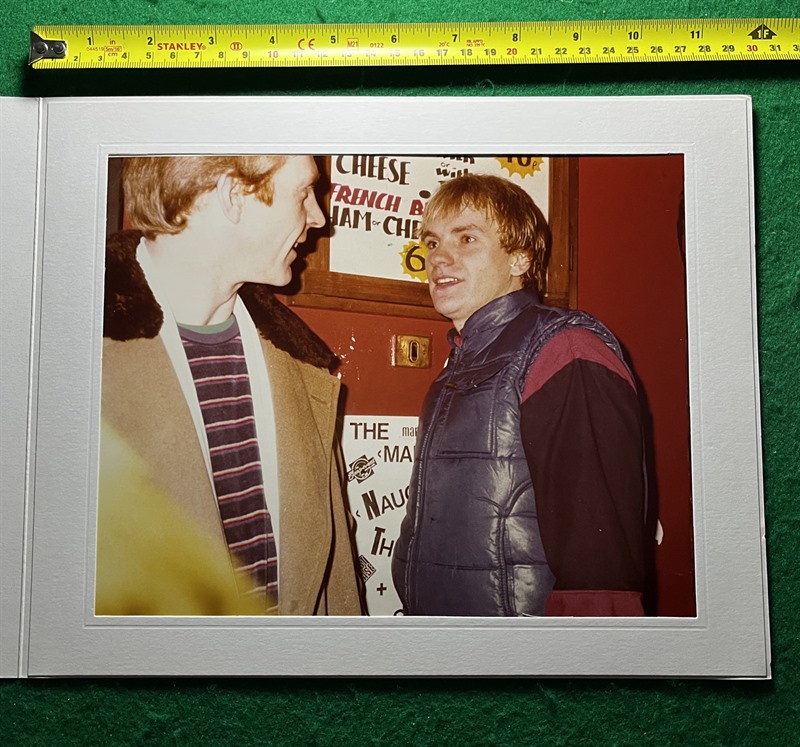 Rare mounted colour photo (8"x 10") of The Police performing at a secret gig at the Marquee, 12th Dec 1981, the performance being for loyal Fan Club members, friends & a few VIP guests. The image shows Sting in an informal moment before going on stage.