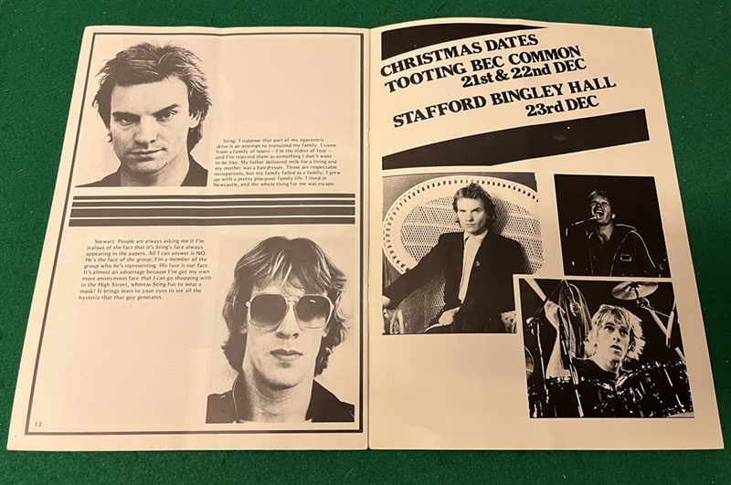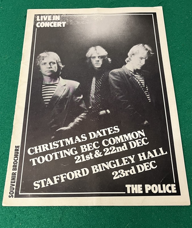 The Police concert programme for Christmas gigs at Tooting Bec Common, 21st022nd Dec 1980 & Stafford Bingley Hall 23rd Dec '80.