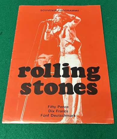 This programme would have been sold illegally outside venues on the Tour. Although the programme has price text on the front cover in English, French & German, the text inside is only in English & German (no pages missing but this indicates the less than professional background to the creation of this prog). Irrespective, this programme is scarcer than the more commonly found official '76 Stones programmes!