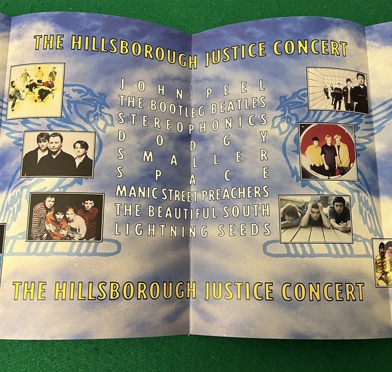 28-page programme with foldout centre for "The Hillsborough Justice Concert", 10th May 1997, the gig featuring the likes of The Stereophonics, Manic Street Preachers, Lightning Seeds, Dodgy, Beautiful South etc.