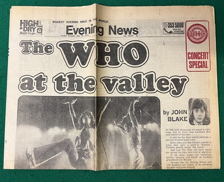 An Evening News "WHO Concert Special" dated 18th May 1974 & issued in conjunction with The WHO's gig at Charlton FC.