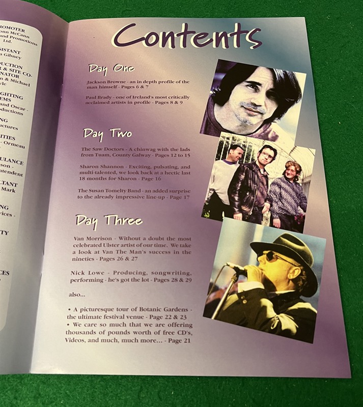 This 3-day event included Van Morrison, Jackson Browne, The Saw Doctors, Nick Lowe etc.